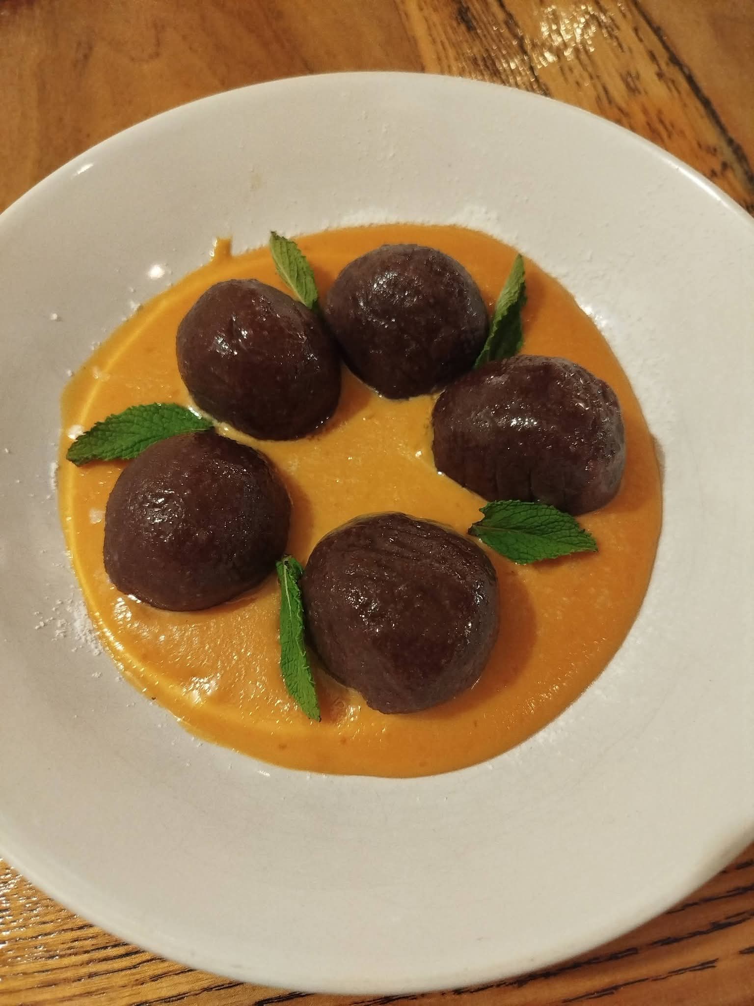 1. 120g🐥🍛 Kuracia kapsa plnená prosciuttom🍖, enciánom🧀 a hruškou 🍐/1,7/