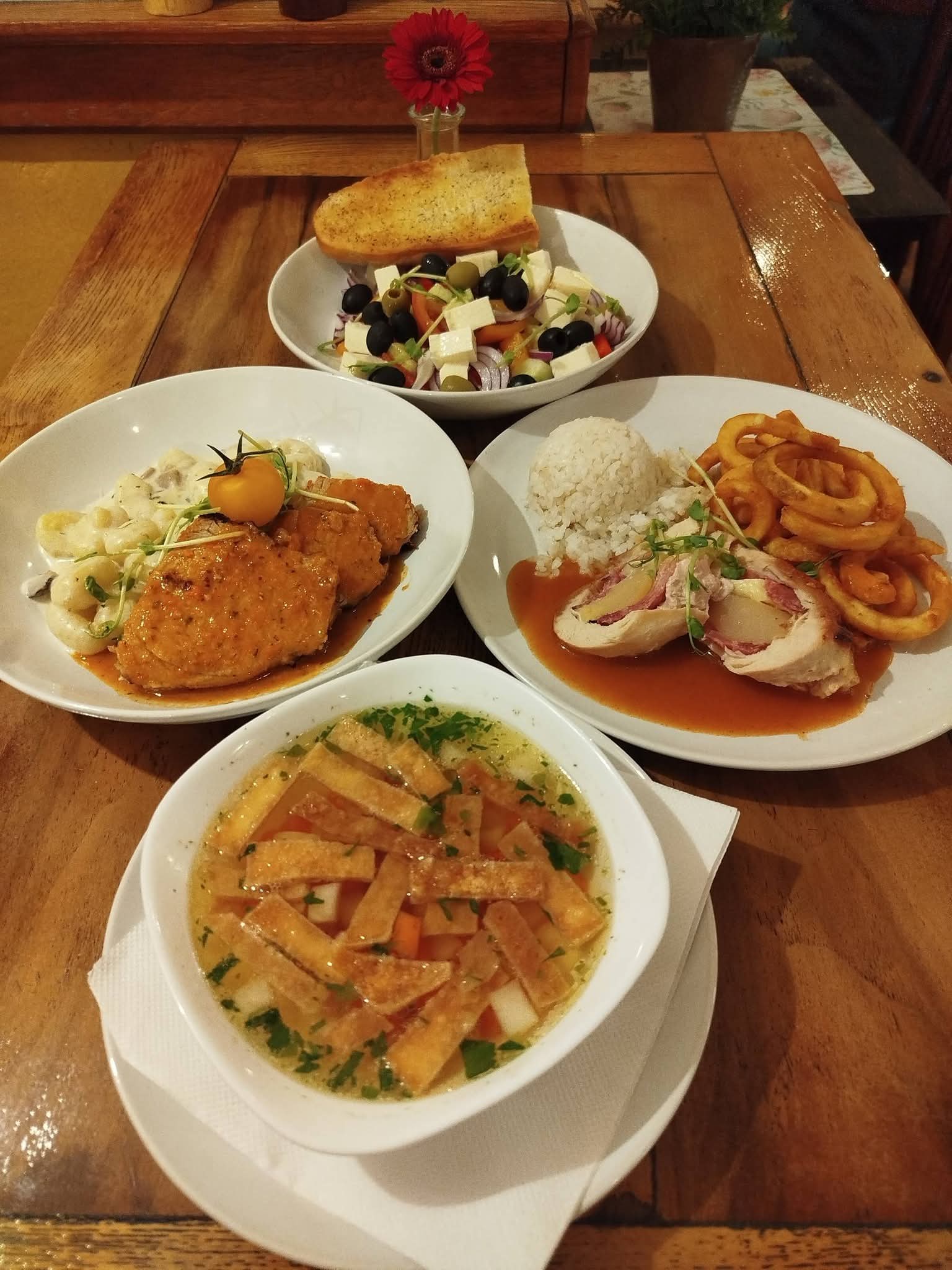 3. 260g🥗🧀 🥗Grécky šalát so zapekanou bagetkou🥖 /1,3,7/(paradajka, paprika, uhorka, olivový olej, balkánsky syr, olivy, červená cibuľka)